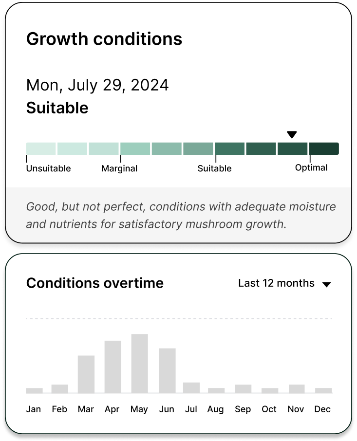 Using advanced weather data and machine learning insights, Rell guides you to the best spots for Morels, Chanterelles, and more.